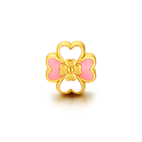 黄金3D硬金转运珠[迷幻森林]珐琅四叶花爱心